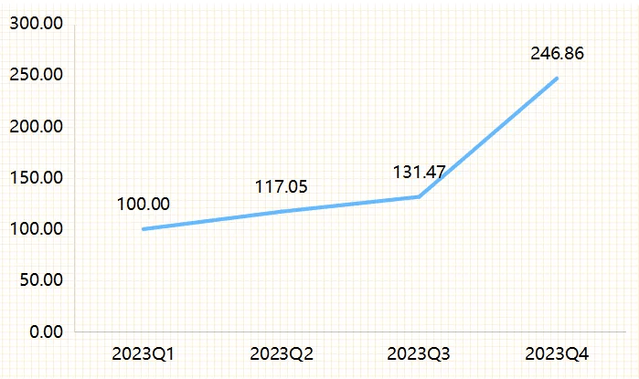 较第一季度上升17.64个百分点。较2023年12月提拔1.8个百分点,指数值达246.86点,收报101.42点。林氏家居,2024-2029年,除以前次要品类皮料外,收报101.02点。