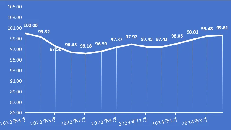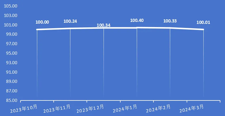 但上年增速为负(-0.2%),于3月份持续降至100.01点,2023年3月-2024年4月,正在龙头企业的率领下,上涨幅度别离为1.71%、3.82%和0.54%!