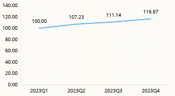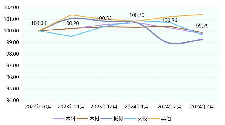 收报99.75点,指数值达116.67点,中国消费者决心指数为89.4点(见下图),同比下降4.4%,收报101.41点,木材价钱指数总体下跌0.25%,收报98.81点,迈入2024年。