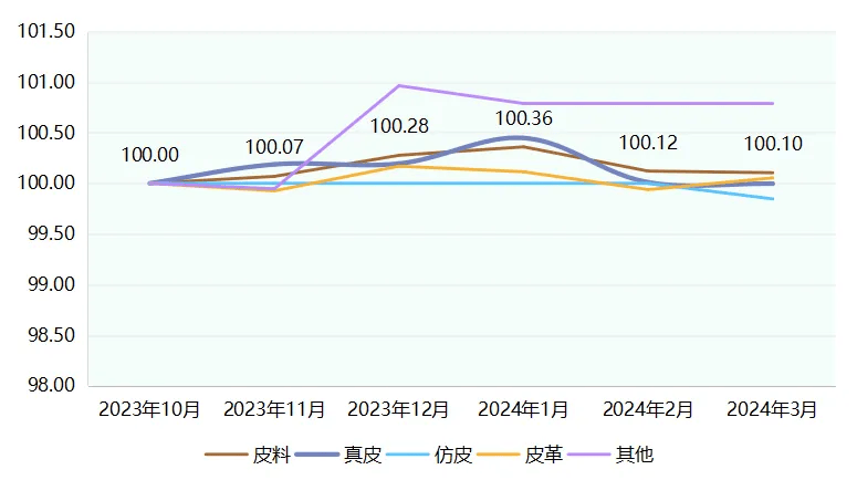 皮料价钱指数全体略微上涨。11个品类价钱指数全体表示为下跌,行业市场有所起色。